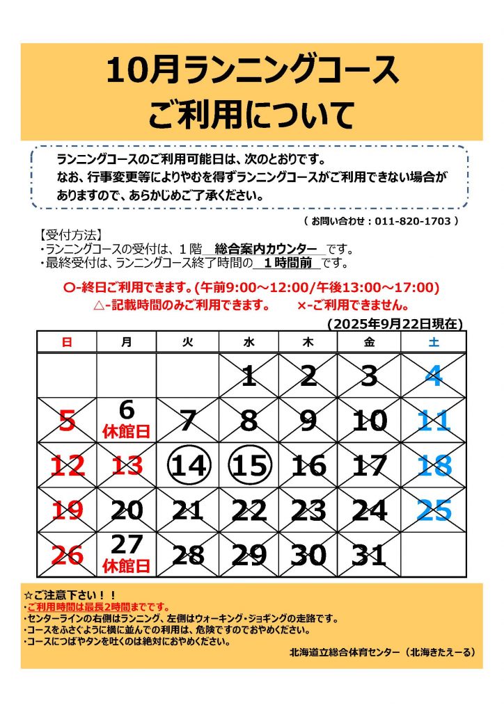 - 当センターでは盗難や事故等の責任は負いかねますので、常に自己管理、自己責任でランニングを行って下さい。