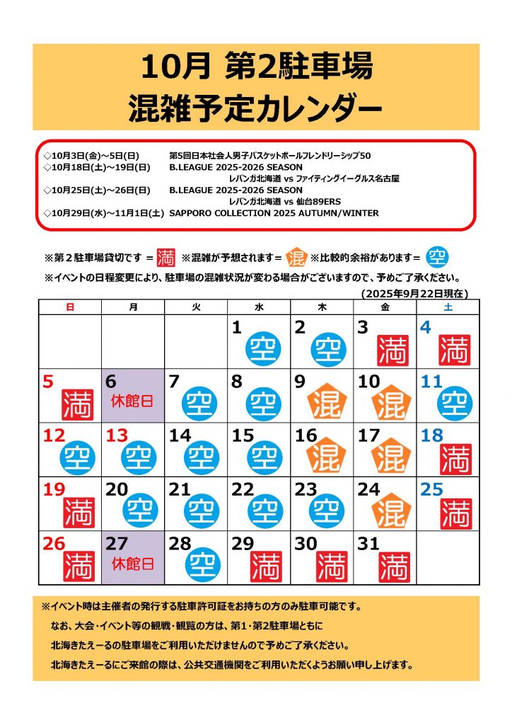 【10月混雑予定カレンダー 2025年9月22日現在】