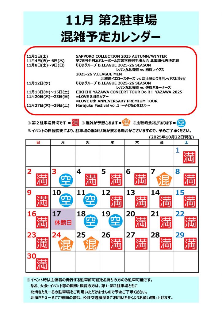 【11月混雑予定カレンダー 2025年10月22日現在】