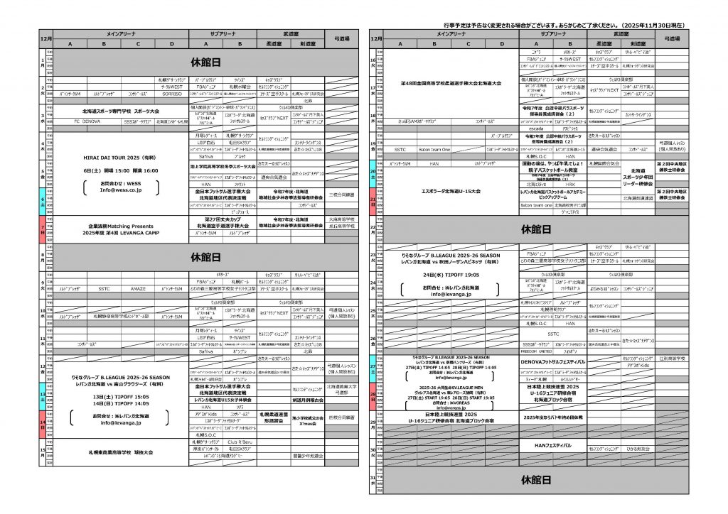 行事案内表の空白の部分は、行事案内作成時点で予定の入っていない時間帯です。