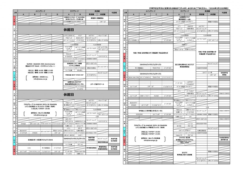 施設・イベントスケジュール