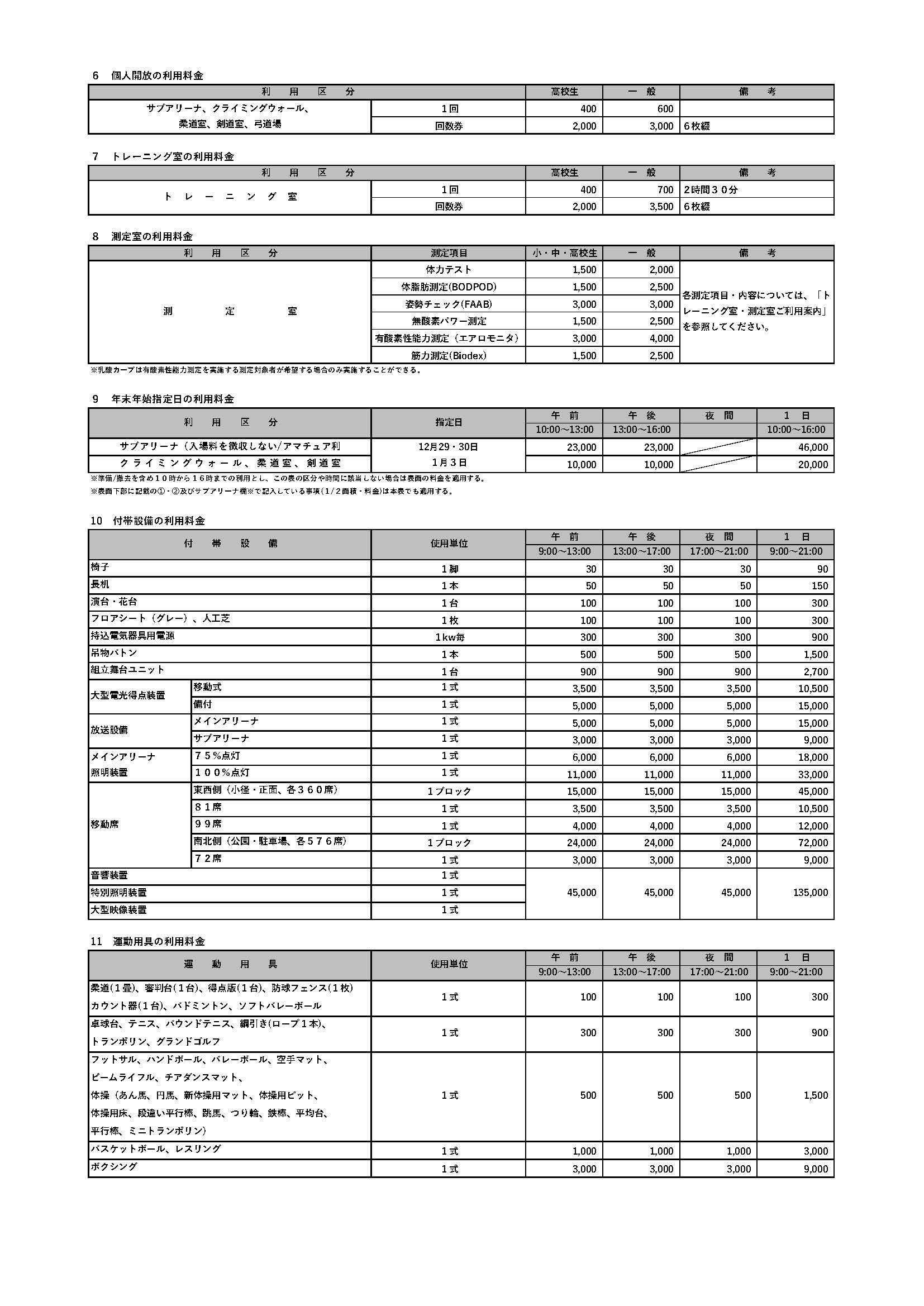 新利用料金表(2026年4月1日~)